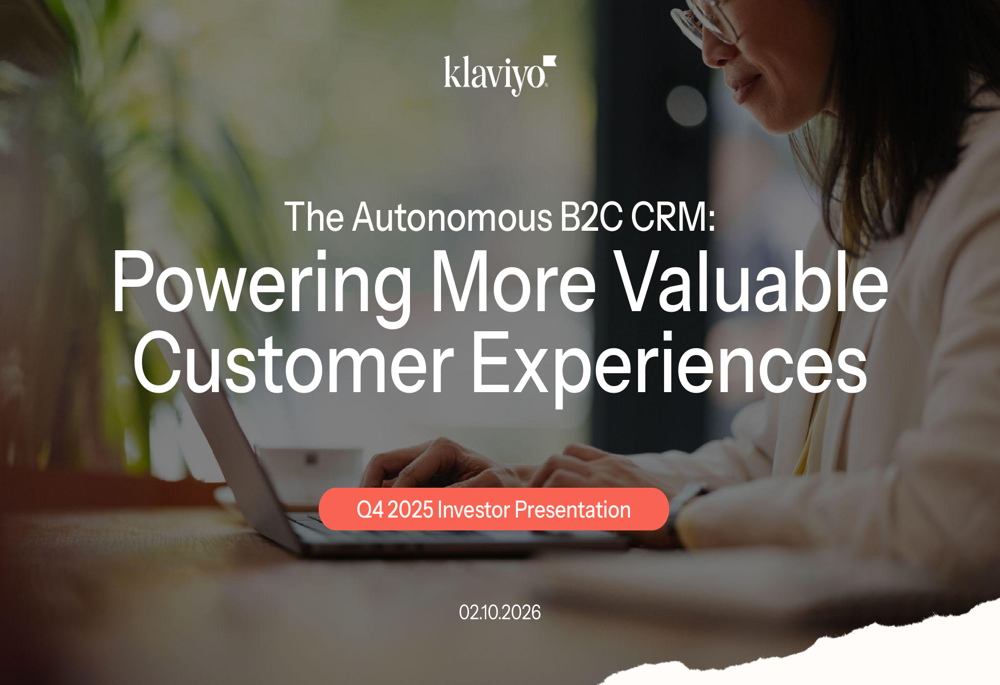 Klaviyo, Inc. provides a cloud-based software-as-a-service platform in the United States, rest of the Americas, the Asia-Pacific, the United Kingdom, rest of Europe, the Middle East, and Africa. The company offers Klaviyo business-to-consumer (B2C) CRM, a unified platform that combines marketing, service, and analytics into a single system. It also provides Klaviyo Data Platform (KDP), which offer tools to unify, enrich, transform data, run more advanced reporting and predictive analysis, and sync data; Advanced KDP that provides an enhanced set of data capabilities; Marketing Agent, an AI-driven and autonomous marketing assistant designed to automate and accelerate marketing strategy, content creation, and campaign execution; Customer Agent, an AI-powered assistant that provides support and selling across digital channels; Klaviyo Social, which brings social interaction data into the company’s unified consumer profiles; and Marketing Analytics that provide real-time AI-powered insights into consumer purchase. In addition, the company offers email marketing solutions comprising a range of customizable drag-and-drop templates, automated campaign and workflow capabilities, smart send time optimization, generative AI tools, and A/B testing; mobile messaging capabilities through text messaging, rich communication services, and WhatsApp; personalized push notifications; reviews add-on to collect product reviews, consumer data, and messaging; and integration, segmentation, automation, and analytics and benchmark features for its platform. Further, it provides Customer Hub, a consumer-facing portal that brings shopping, service, and personalization together in one place; and Helpdesk, an AI-powered workspace for managing consumer conversations across channels. The company serves entrepreneurs, small and medium-sized businesses, mid-market businesses, and enterprises. Klaviyo, Inc. was incorporated in 2012 and is headquartered in Boston, Massachusetts.