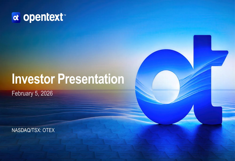 Open Text Corporation designs, develops, markets, and sells information management software and solutions in North, Central, and South America, Europe, the Middle East, Africa, Australia, Japan, Singapore, India, and China. The company offers cloud services and subscriptions, including software as a service offerings, application programming interfaces and data services, and private, public, and off-cloud products, such as hosted services and managed service arrangements; foundational platform of technology services; and packaged business applications, as well as managed services and outsourced B2B integration solutions, including program implementation, operational management, and customer support. It also provides fees earned from the licensing of software products to customers; and consulting and learning services, such as implementation, training, and integration of licensed product offerings into the customer’s systems. In addition, the company offers various business clouds, including content, cybersecurity, DevOps, business network, observability and service management, and analytics; and artificial intelligence, software developers API, and other related services. It has strategic partnerships with SAP SE, Google Cloud, Amazon Web Services, Microsoft Corporation, Oracle Corporation, and Salesforce.com Corporation, as well as global systems integrators, including Accenture plc, Capgemini Technology Services SAS, Deloitte Consulting LLP, Hewlett Packard Enterprises, and Tata Consultancy Services. The company serves G10K organizations, enterprise companies, public sector agencies, mid-market companies, small and medium-sized businesses, and direct consumers. Open Text Corporation was incorporated in 1991 and is headquartered in Waterloo, Canada.