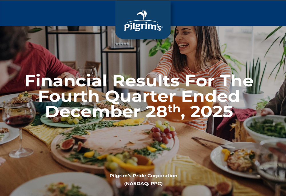 Pilgrim's Pride Corporation produces, processes, markets, and distributes fresh, frozen, and value-added chicken and pork products to retailers, distributors, and foodservice operators in the United States, Europe, and Mexico. The company offers fresh products, including refrigerated whole or cut-up chicken, selected chicken parts that are either marinated or non-marinated, primary pork cuts, added value pork, pork ribs, and lamb products; and prepared products, which include fully cooked, ready-to-cook and individually frozen chicken parts, strips, nuggets and patties, processed sausages, bacon, smoked meat, gammon joints, pre-packed meats, sandwich and deli counter meats, and meat balls and coated foods. It also provides plant-based protein, ready-to-eat meals, multi-protein frozen food, vegetarian food, and desserts. In addition, its exported products include whole chickens and chicken parts for distributors in the U.S. or frozen for distribution to export markets and primary pork cuts, hog heads, and trotters frozen for distribution. The company offers its products under the Pilgrim’s, Just BARE, Gold’n Pump, Gold Kist, County Pride, Pierce Chicken, Pilgrim’s Mexico, To-Ricos, Del Dia, Moy Park, Matteson’s, Richmond, Fridge Raiders, and Denny brands. It serves chain restaurants, food processors, broad-line distributors, and other institutions; and retail market, such as grocery store chains, wholesale clubs, and other retail distributors. The company was founded in 1946 and is headquartered in Greeley, Colorado. Pilgrim's Pride Corporation operates as a subsidiary of JBS N.V.