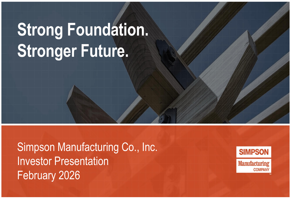 Simpson Manufacturing Co., Inc., together with its subsidiaries, designs, engineers, manufactures, and sells structural solutions for wood, concrete, and steel connections in the North America, Europe, and the Asia Pacific. The company provides structural products for wood construction, such as connectors, fasteners, and lateral-force resisting systems; anchor, repair, protection and strengthening products including coatings, sealers, mortars, fiberglass and fiber-reinforced polymer systems and asphalt products. In addition, the company offers engineering and design services, as well as software solutions. It markets its products to the residential construction, industrial, commercial and infrastructure construction, remodeling and do-it-yourself markets. It offers engineering and design services. It serves its products to dealers, home centers, wood component manufacturers, OEM-relationships, distributors, and contractors industries. The company was founded in 1956 and is headquartered in Pleasanton, California.